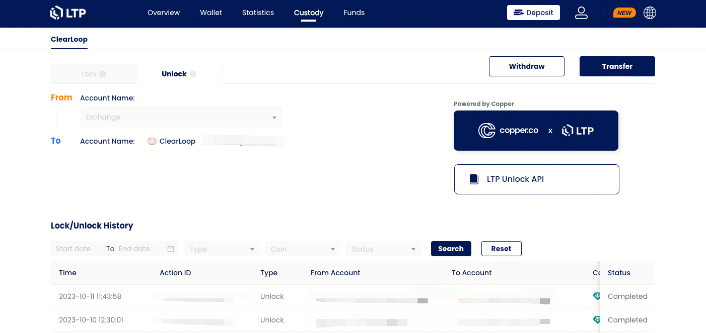 LTP has integrated with Copper ClearLoop to provide asset off-exchange management and settlement solutions. ClearLoop enables customers to keep their funds in custody while still being able to trade directly on the exchange. The venue on ClearLoop that LTP integrates is OKX and Bybit. If you are interested at this product, please contact your account manager or BD manager for more details.